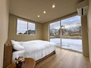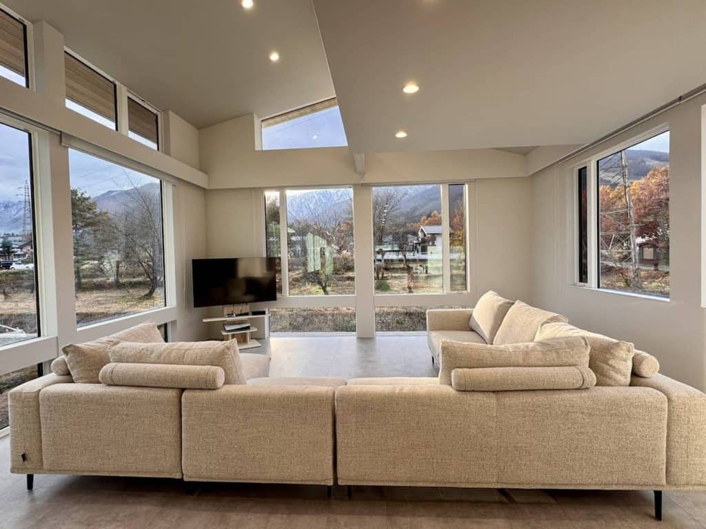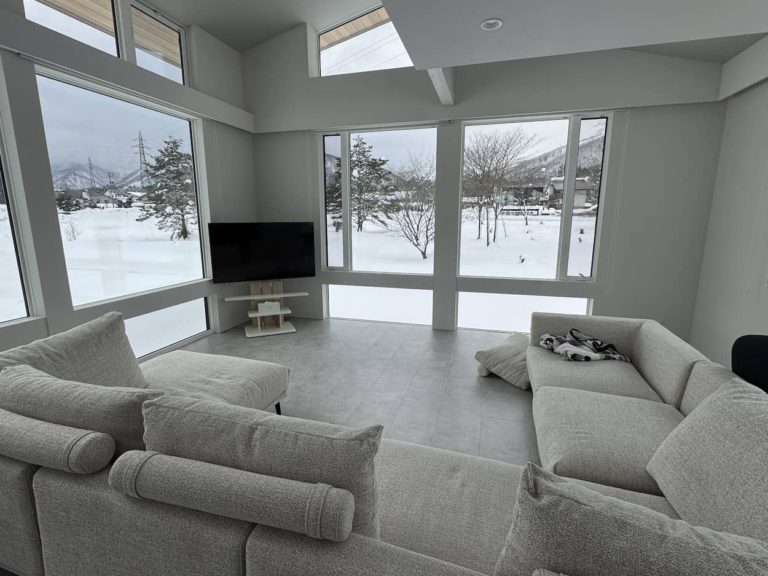 MK House is a brand new 3-bedroom, 2-bath home for 8 guests in Echoland, with mountain views from every room. Just a 5-minute walk to restaurants, bars, and shops, it’s perfectly placed for slopes and Snow Machine festivities. The open-plan living, dining, and kitchen areas all overlook the mountains, including Happo-One and the Olympic ski jumps. With underfloor heating, a private ski gear room, laundry facilities, and high-quality appliances, MK House combines convenience, comfort, and epic alpine views.